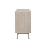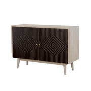 Add a bold statement to your space with this two-door accent cabinet, showcasing a striking black and gold geometric design against a whitewashed mango wood frame. The solid mango wood construction ensures durability, while the gold inlay diamond pattern creates a striking contrast for a modern yet timeless look. Angled tapered legs lend a mid-century modern flair, making this cabinet an eclectic and stylish addition to entryways, dining rooms, or living spaces. With spacious interior storage, this piece blends artistic design with everyday functionality. Key Features: • Solid mango wood accent cabinet with a whitewashed finish • Gold inlay geometric pattern contrasts elegantly against the black doors • Two spacious cabinet doors offer concealed storage for organization • Mid-century modern tapered legs enhance its sleek, stylish silhouette • Versatile design perfect for entryways, dining rooms, or living spaces • Durable craftsmanship ensures long-lasting beauty and functionality