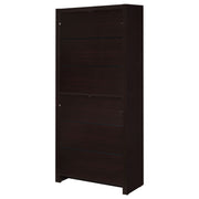 Enhance your office or living space with this modern bookcase, offering both open shelving and concealed storage. The rich cappuccino finish brings a warm and sophisticated touch, while four spacious shelves provide ample room for books, décor, and office essentials. Two adjustable shelves allow for customizable organization, while a lower drawer with sleek silver handles offers discreet storage. Built from durable engineered wood and laminate veneer, this bookcase is a stylish and practical addition to any workspace or home library. Key Features: • Modern bookcase with a sleek cappuccino finish for a refined look • Four spacious shelves, including two adjustable for flexible storage • Lower drawer with smooth Euro glides provides concealed storage • Durable MDF, engineered wood, and laminate veneer construction • Perfect for home offices, living rooms, or study areas • Pairs beautifully with matching office furniture for a cohesive setup