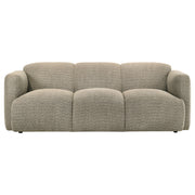 This sculptural sofa set blends soft curves with modern simplicity for a cozy, elevated lounge experience. Each piece is wrapped in richly textured fabric and designed with a low-profile frame, rounded edges, and wide track arms that invite you to unwind. High-quality foam and pocket coil seating ensure supportive comfort that lasts. With its seamless silhouette and tactile finish, this sofa set offers minimalist warmth and relaxed sophistication for any contemporary living space. Key Features: • Sofa set with rounded silhouettes and low-profile frames for sculptural modern appeal • Upholstered in textured white fabric with soft feel and warm visual dimension • Curved track arms and continuous lines create an inviting, enveloping shape • High-density foam cushions provide plush comfort across all seating areas • Pocket coil seating delivers long-lasting support and maintains structure • Perfect for modern living spaces seeking soft form and relaxed sophistication