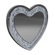 This heart-shaped wall mirror adds sparkle and function to glam-inspired spaces. Framed with mirrored glass and outlined by faceted acrylic crystal inlay, it delivers high-shine appeal. Integrated LED lighting enhances visibility for makeup, grooming, or daily routines. Designed for wall mounting, this decorative mirror combines charm and practicality—ideal for bedrooms, vanities, or dressing areas needing both style and illumination.