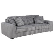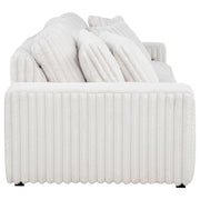 Striking and indulgently soft, this modern sofa set blends bold styling with innovative comfort. Deep vertical channel tufting enhances the rich corduroy upholstery, while dual power chaise functionality allows either side to extend independently, transforming the sofa into a full lounging surface. Wide arms, plush foam cushioning, and an integrated control panel with USB-A and USB-C charging bring next-level convenience. Designed for luxurious, tech-savvy relaxation. Key Features: • Contemporary sofa set in ivory corduroy features deep channel tufting and dual power chaise design • Each side of the sofa extends independently for custom comfort and spacious lounging • Wide padded arms and plush foam cushions offer sculptural comfort and bold modern form • Integrated control panels includes both USB-A and USB-C ports for convenient device charging • Corduroy fabric upholstery delivers rich texture and soft-touch appeal for everyday luxury • Crafted from soft fabric, foam cushioning, and durable plastic framing for long-lasting use