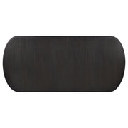 Rooted in quiet strength and sculptural beauty, this extension dining table brings graceful presence to every gathering. Its soft-edged rectangular top rests on a bold pedestal base, finished in burnished black for depth and contrast. When needed, a removable leaf extends the surface with the help of equalizing metal cable glides, allowing for smooth expansion. Whether hosting intimate dinners or festive occasions, this table adapts with effortless elegance. Key Features: • Rectangular extension table finished in burnished black with softened corners • Removable leaf extends the tabletop to nearly ninety-six inches with ease • Equalizing metal cable glides ensure smooth, balanced one-person operation • Architectural pedestal base provides sculptural support and open grounding • Elegant scale supports both everyday meals and larger dinner occasions • Constructed from ash veneer, rubberwood, and engineered wood