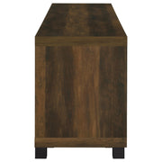 Elevate your living area with our rustic urban TV stand, a perfect blend of timeless aesthetics and modern functionality. Highlighted by striking black hardware accents, this piece boasts four ample compartments that ensure your media devices are organized and easily accessible. A sophisticated glass door juxtaposed with fixed shelves adds both style and practicality. For those seeking added storage and a cohesive look, pair this stand with our matching media towers. The stand's boxy silhouette, complemented by smooth surfaces and versatile adjustable shelves, offers a contemporary touch, ensuring it's not just a furniture piece but a statement of design excellence.