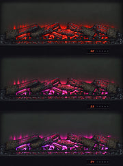 This fireplace TV stand combines rustic charm and modern convenience with a lifelike burning ember display. Finished in rich dark pine, it features two framed tempered glass doors that open to adjustable shelving for media or decor. The central fireplace insert provides visual warmth, all controlled by a convenient wireless remote. With clean lines, black hardware, and integrated cord access, it accommodates TVs up to 80 inches. Please note that there is no heat function included. Key Features: • Fireplace TV stand in dark pine finish with black hardware and contemporary linear styling • Realistic burning ember display without heat functionality delivers visual warmth and ambiance • Wireless remote provides easy control over flame brightness, color settings, and timer function • Two framed tempered glass doors open to adjustable shelves for media or decorative storage • Integrated cord management keeps cables neatly concealed and electronics accessible • Supports flat panel TVs up to eighty inches wide and is crafted from durable engineered materials