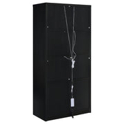 A dramatic silhouette and graceful arches come together in this striking display cabinet, where elegance meets purpose. Tall framed glass doors open to reveal a softly illuminated stage, casting warm light across treasured pieces. Below, concealed storage offers hidden utility behind panel doors, each compartment thoughtfully fitted with adjustable shelves. Cloaked in a deep black woodgrain, this cabinet brings quiet drama and timeless refinement to any curated space. Key Features: • Accent display cabinet with four doors including framed glass uppers and panel lowers • Black finish highlights the cabinet’s tall frame with modern depth and clean geometry • Upper doors reveal LED-lit display • Lower doors conceal dual compartments with two adjustable wood shelves inside • Arched glass doors soften the vertical lines with graceful contrast and elevation • Crafted from engineered wood, ash veneer, tempered glass, and laminate veneer