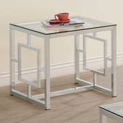 This square end table combines contemporary style with a sleek design, making it an excellent addition to any living room. The clear tempered glass top is durable and easy to maintain, while the electroplated chrome frame provides a polished, reflective finish. Its open geometric base enhances the modern aesthetic and offers structural stability. Ideal as a side table for functional use or decorative display, this versatile piece blends form and functionality with high-quality materials. Key Features: • Square end table with a clear tempered glass top • Electroplated chrome frame with a polished reflective finish • Clear glass top offers lasting durability and a modern look • Open geometric base enhances style and structural support • Versatile design functions well as an end table or side table • Sturdy metal construction ensures strength and long-term use