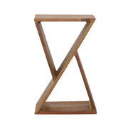 This reclaimed wood side table combines modern geometry with rustic charm. The hourglass-inspired silhouette features intersecting triangular shapes for an artistic touch. Constructed with reclaimed wood, the natural finish highlights the grain variations, adding character to any setting. Perfect as an end table or accent piece, it blends sustainability with style. Its unique open design makes it functional and visually striking, ideal for modern or rustic living rooms. Key Features: • Reclaimed wood side table showcasing a bold geometric hourglass-inspired design • Natural finish highlights the wood's organic grain variations for added character • Unique triangular shapes intersect, offering a modern and artistic aesthetic • Crafted from eco-friendly reclaimed wood, blending style and sustainability • Open design offers a balance of visual interest and functional versatility • Perfect as an end table or accent table to complement various spaces