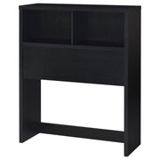 Organize your bedroom essentials with this bookcase headboard in a finish that matches any decor. Featuring two spacious open compartments, it offers convenient storage for books, décor, and personal items. Built from sturdy engineered wood and finished with a scratch-resistant laminate veneer, this headboard combines durability with style. Its versatile design adds a rustic charm to any bedroom while optimizing storage in small spaces.