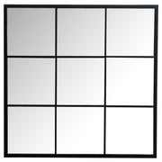 This square mirror features a classic windowpane layout, bringing timeless symmetry and charm to any interior. Divided into nine mirrored panels by slender black trim, it creates a French-inspired grid effect that adds depth and balance to walls. The bold black frame complements a variety of design styles, from traditional to transitional. Ideal for bathrooms, foyers, or living rooms, this wall mirror helps brighten tight spaces and adds architectural structure. Key Features: • Square wall mirror styled with a classic nine-panel windowpane layout • Black-finished metal frame adds contrast and timeless visual appeal • French-inspired design suits traditional, transitional, and modern interiors • Grid pattern enhances symmetry while opening up compact spaces • Ideal above vanities, consoles, or in hallways and entry foyers • Mounts flush to the wall to provide architectural depth and brightness