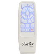 Revitalize yourself each and every night with this stunning multifunctional adjustable bed base with grey fabric trim and adjustable or removable legs. The bed base delivers the latest in modern technology with dual massage function on the head and foot of the bed, with three levels of intensity for optimal relaxation. The bed is equipped with a wireless remote that's backlit and gives full control of the height of the head and foot of the bed and includes presets for a most comfortable night's sleep. Each side of the bed is equipped with a dual USB port perfect for keeping bedside electronics charged and ready to use. You can even control the bed from your phone with Bluetooth connectivity and the Coaster app installed on your smart device. This premium adjustable bed base revolutionizes your bedroom into a relaxing multi-functional space and provides an abundance of features and customizable ergonomic positions to get great sleep and revitalize yourself. Key Features: • Wireless remote features backlit soft-touch controls for independent head and foot incline, preset Zero Gravity/Antisnore/Flat/Memory positions, as well as a handy integrated flashlight • Dual massage on head and foot with 3 levels of intensity will make lounging a relaxing a therapeutic dream come true • Dual USB charging stations on both sides keeps you and your partner's electronic necessities at arm's reach and ready to go • Underbed LED light offering a convenient nighttime solution when nature calls • Versatile 3-in-1 legs accommodate all types of beds, able to be adjusted to heights of 3-inch, 6-inch, 9-inch, 12-inch, or removed altogether to be placed onto a platform base • Emergency power-down feature in the event of a power outage