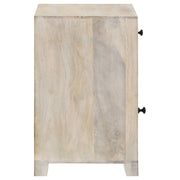 Built from an eco-friendly solid mango wood for sustainable homes, this contemporary accent cabinet makes a striking statement piece in a space. Designed with a lightly hued, whitewash finish, this accent table lends itself nicely to a variety of color palettes and decor styles. Diamond-like lattice cut outs along the front cabinet and drawer front offer charming elements to the simple, smooth surfaces of this understated furniture piece. Store essentials in a top drawer and the bottom cabinet, keeping the tabletop free of clutter. Place this lovely accent table in a beach bungalow and allow it to double as a nightstand in a global-inspired, eclectic bedroom. Key Features: • Solid mango wood construction with a light whitewashed finish • Lattice cut-out design on drawer and door fronts adds texture and charm • Single upper drawer and lower cabinet offer compact storage • Fitted with black metal hardware for contrast and durability • Compact footprint makes it ideal for bedrooms, living rooms, or entryways • Made from eco-friendly materials including mango wood and MDF