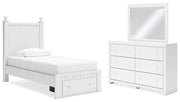 Package Contents: 5-Piece: Bed (Headboard,Footboard,Rails)/Dresser & Mirror