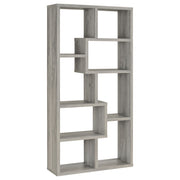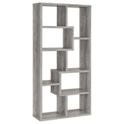 With six convenient shelves, this bookcase is perfect for keeping your reading materials in one place. Sturdy and durable, it's expertly crafted from MDF, particle board, and engineered veneer. Its striking silhouette is bold, yet refined with geometric shapes of various sizes. It's available in your choice of four stunning finishes to match your decor. Whether it's placed in a home office, living room, or bedroom, this bookcase is an exquisite enhancement to any home. Key Features: • Geometric bookshelf with eight open cubbies in weathered grey finish • Box-style tiers create modular compartments in varying sizes • Scratch-resistant laminate veneer over engineered wood core • Tall vertical form saves space while maximizing storage options • Neutral grey tone complements a variety of modern interiors • Tip-over restraint included for added wall anchoring security